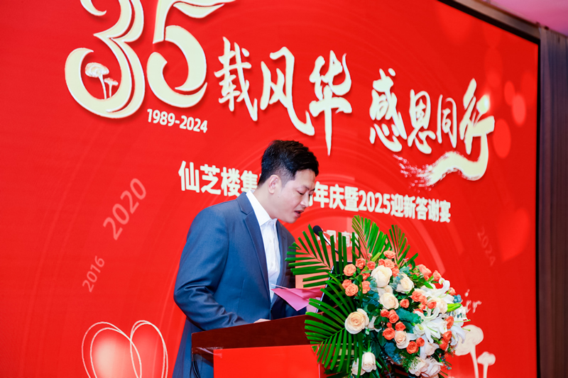 活动现场以“35载风华 感恩同行”为主题,布置得既典雅又不失活力,灵芝元素点缀其间,与温暖的灯光交相辉映,让这个迎新答谢宴氛围拉满。