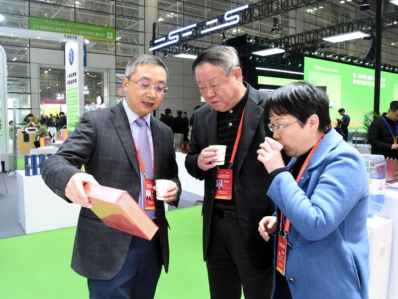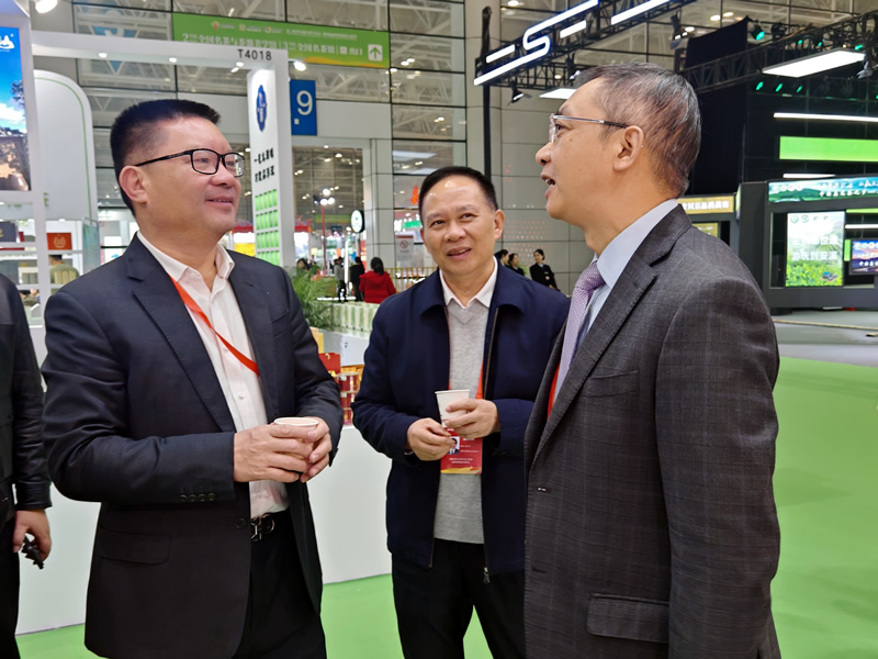 ▲福州市人民政府原副市长、福州海峡茶叶交流协会会长陈奇(中间)参观Z6尊龙·凯时展馆