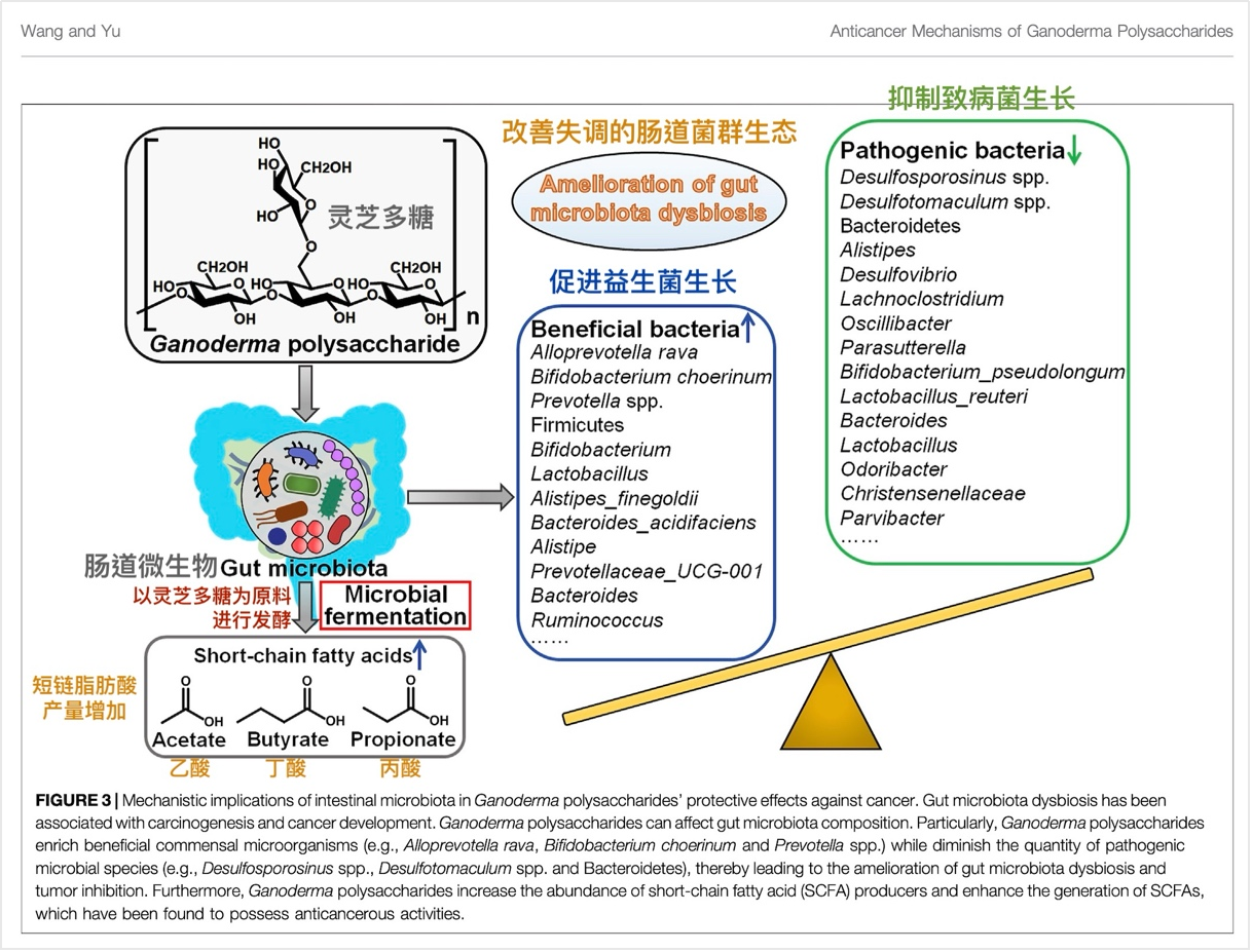 图3 灵芝多糖调节肠道菌群,助力有利抗肿瘤的益生菌示意图
