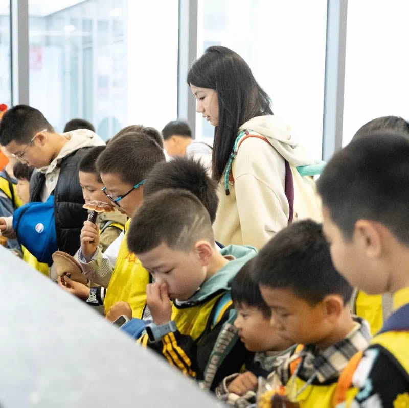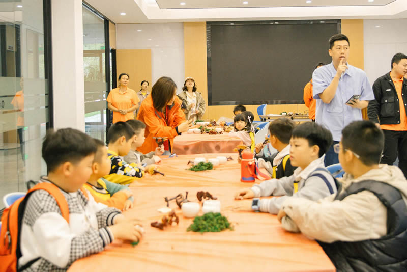 孩子们一边好奇地观察着灵芝、桑黄、灵芝花等食药用菌,一边竖起小耳朵认真聆听工作人员的讲解,让孩子们感受到大自然造物的神奇智慧。