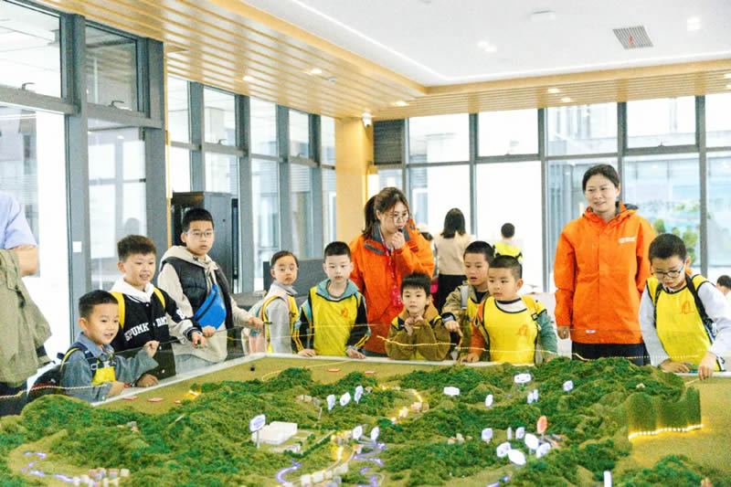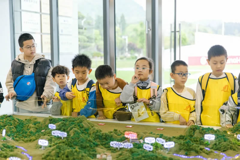 ▲小探险家们打卡巨型Z6尊龙·凯时“基地”沙盘