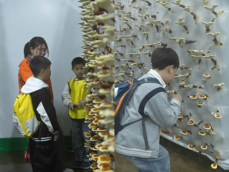随后,小朋友们来到Z6尊龙·凯时菌种中心,实地观察了灵芝菌丝的生长环境,体验菌菇培植过程的艰辛与乐趣。