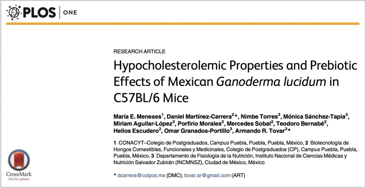 2. María E Meneses, et al. Hypocholesterolemic Properties and Prebiotic Effects of Mexican Ganoderma lucidum in C57BL/6 Mice. PLoS One. 2016 Jul 20;11(7):e0159631. doi: 10.1371/journal.pone.0159631. eCollection 2016.