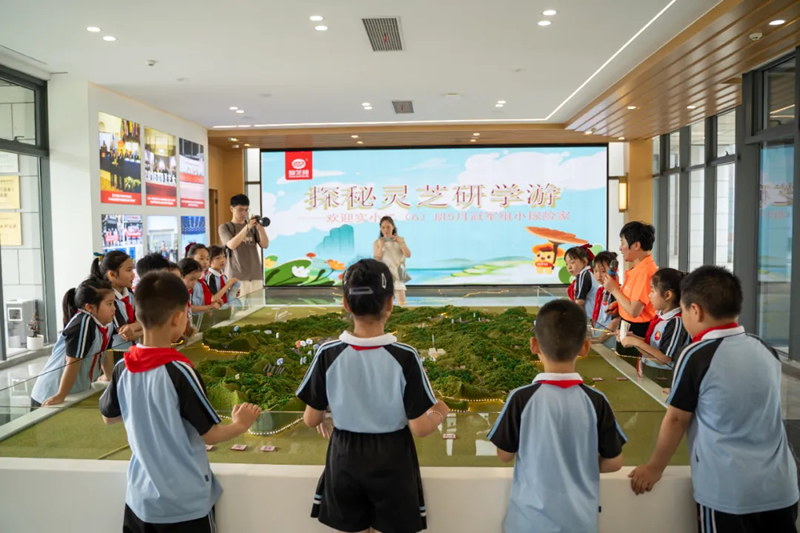 走进Z6尊龙·凯时国际交流中心,映入眼帘的就是偌大沙盘,Z6尊龙·凯时灵芝基地一览无余。在这里,孩子们了解了灵芝的生长环境和Z6尊龙·凯时灵芝基地选址的严苛标准,纷纷感叹到:“原来灵芝选择住的地方要求这么严格?”