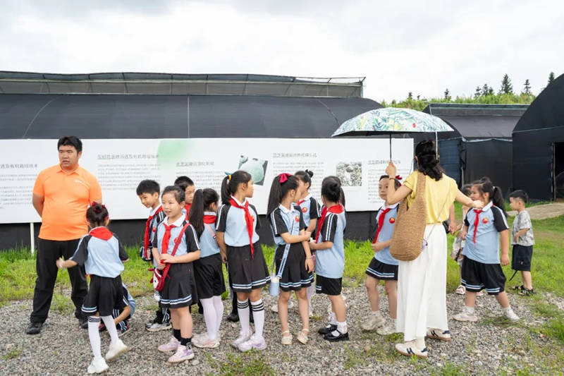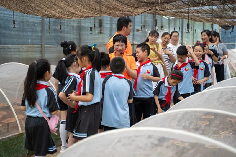 在灵芝博览园,孩子们惊叹地发现,原来灵芝有赤芝、紫芝、韩芝等多个品种,每个品种都有独特的形态特征。通过工作人员的耐心讲解,让孩子们不仅了解灵芝种植的艰辛与不易,还学会尊重劳动和热爱劳动,更感受到科技对传统农业的赋能。
