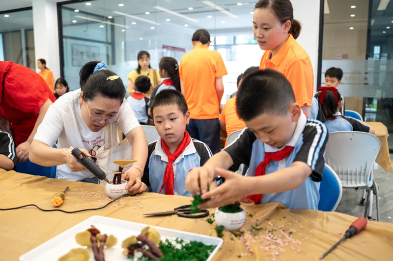 ▲体验灵芝盆景手作