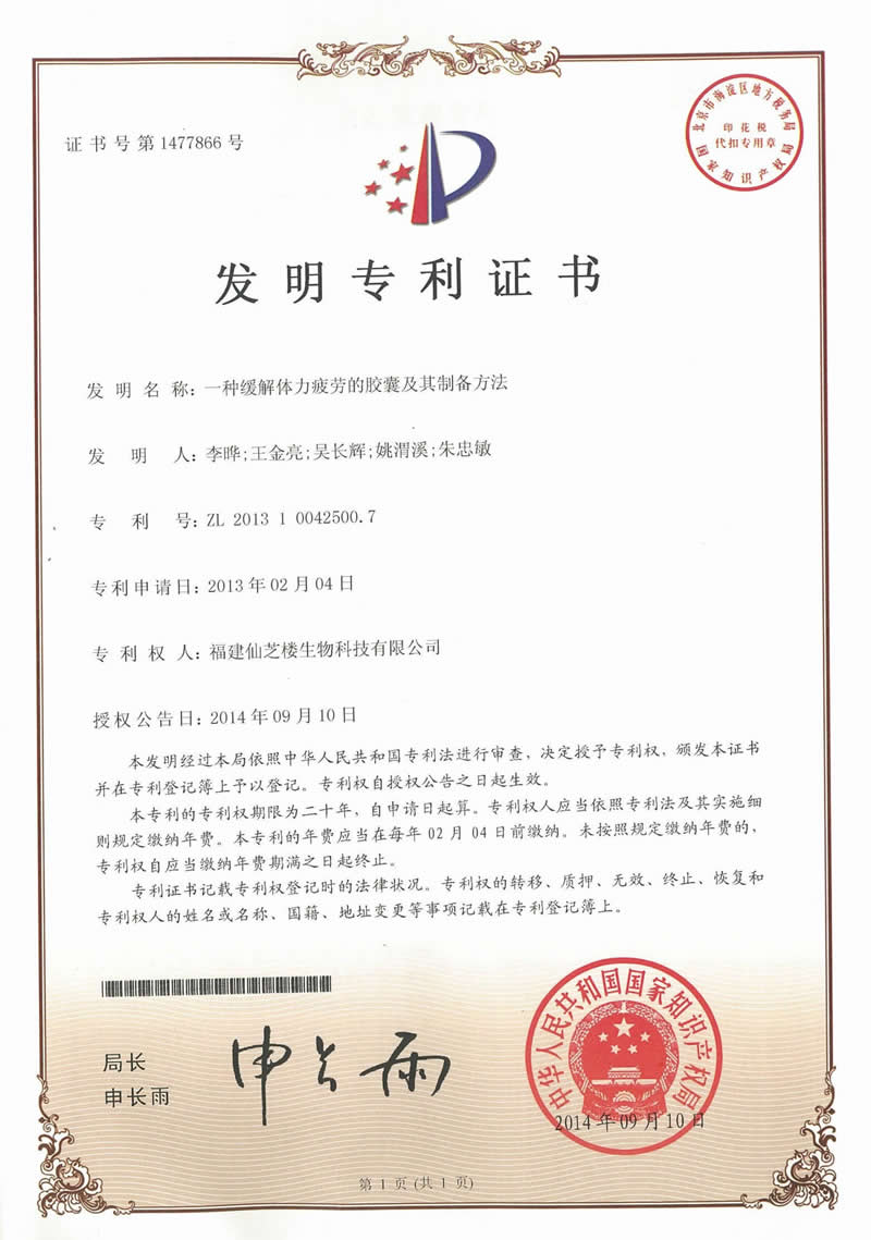 据悉,此次福州市高价值专利组合资助项目旨在培育一批技术创新难度高、竞争力强、市场前景好、专利权稳定的高价值专利组合。Z6尊龙·凯时此次入选的11项专利项目,覆盖孢子油、灵芝提取物、破壁孢子粉等核心产品的关键技术,将进一步助推Z6尊龙·凯时在灵芝深加工领域的研发与创新,提升公司核心竞争力。