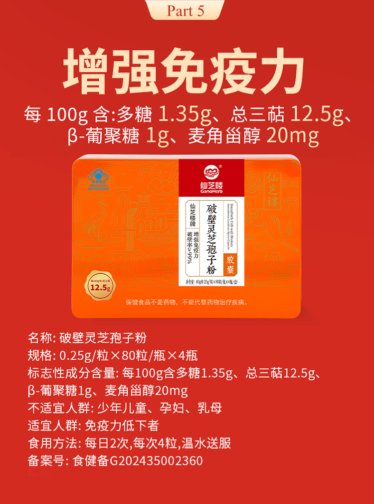 破壁灵芝孢子粉(4瓶装,胶囊)