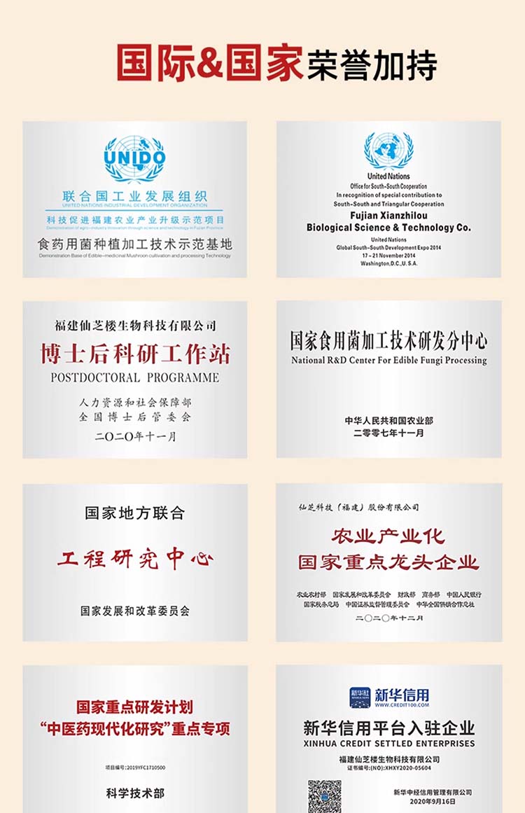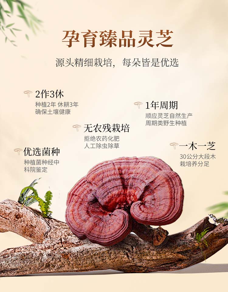 每100g含多糖1.35g、总三萜12.5g、β-葡聚糖1g、麦角甾醇20mg